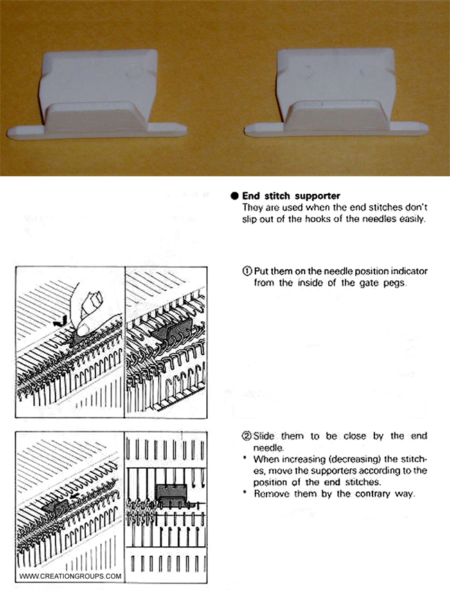 The End Stitch Supporter can also be used with 9mm bulky main bed knitting machine incl.Brother KnitKing KH230 KH260 KH270 Plastic Bed KH370 KH390 and Silver Reed Studio SK150 SK151 SK155 SK890 Plastic Bed LK100 to help the end needles on the main bed knit off the hook.
